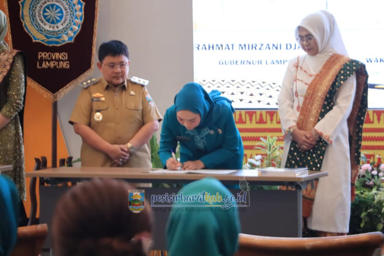 PESISIR BARAT-Kepala Dinas Komunikasi, Informatika, Statistik, dan Persandian (Diskominfotiksan) Suryadi, S.IP., M.M., menginformasikan bahwa, Ketua dan Ketua I Tim Penggerak-Pemberdayaan Kesejahteraan Keluarga (TP-PKK) Kabupaten Pesisir Barat (Pesibar), Dian Hardiyanti, S,ST., M.M., dan Dea Derika Topani, S.H., M.Kn., dan Tim Pembina Posyandu resmi dilantik oleh Ketua TP-PKK Provinsi Lampung, Purnama Sari Mirza, S.E., M.M.
